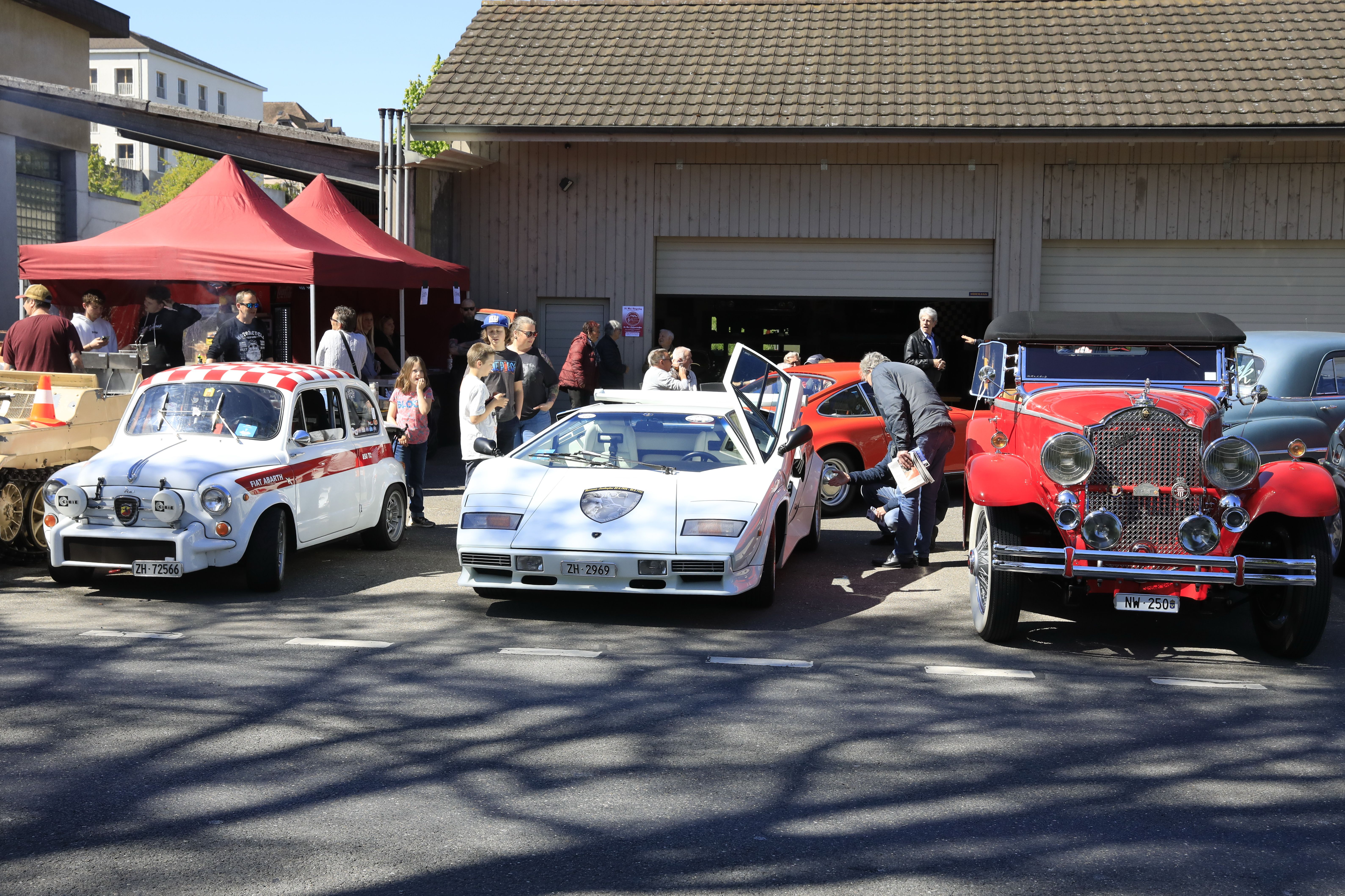 Am Samstag fand die Delegiertenversammlung im Verkehrshaus Luzern statt. An beiden Tagen waren im Veranstaltungskalender über 35 Treffen von Clubs, Garagen und Oldtimervereinen aufgelistet, die für diesen Anlass ihre Oldtimer präsentierten. Am Samstag besuchte ich zusammen mit Hanspeter Sauter, mit seinem Lamborghini Countach LP400S, der für besondere Aufmerksamkeit sorgte, die traditionsreiche Garage von Luis Frey in Muri. Ab 10.00 war der Garagenvorplatz bereits mit Oldtimern gut belegt und es war ein ständiges Kommen und Gehen. Fürs leibliche Wohl war gesorgt mit einem Bratwurst und Getränkestand. Ein besonderes Highlight für Traktorfreunde: Der «Murianer» Traktor. 40 wurden in Muri gebaut zwischen 1936 bis 1942.Davon haben 7 Exemplare überlebt.